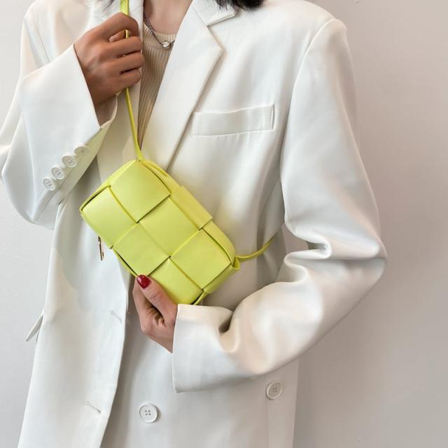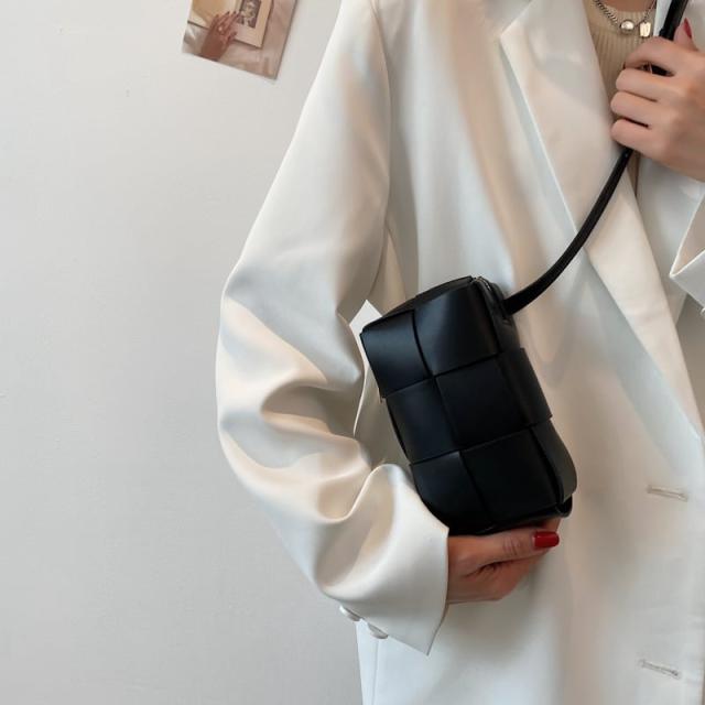 トレンドの編み込みデザインがお洒落でコーディネートのワンポイントとしておすすめなバッグ。