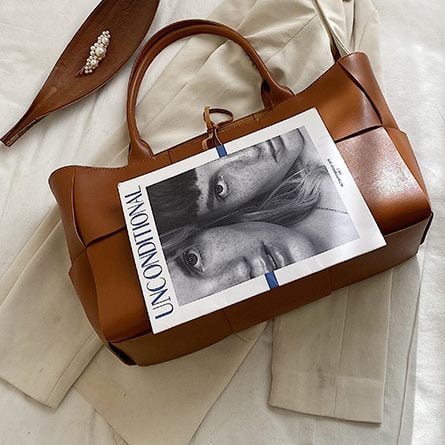 レザーの高級感はそのままに、お手入れや使い回ししやすい合皮素材を使ったトートバッグです。