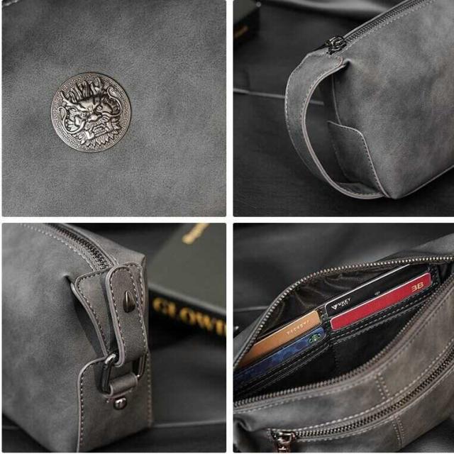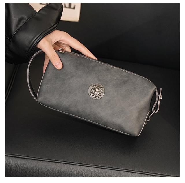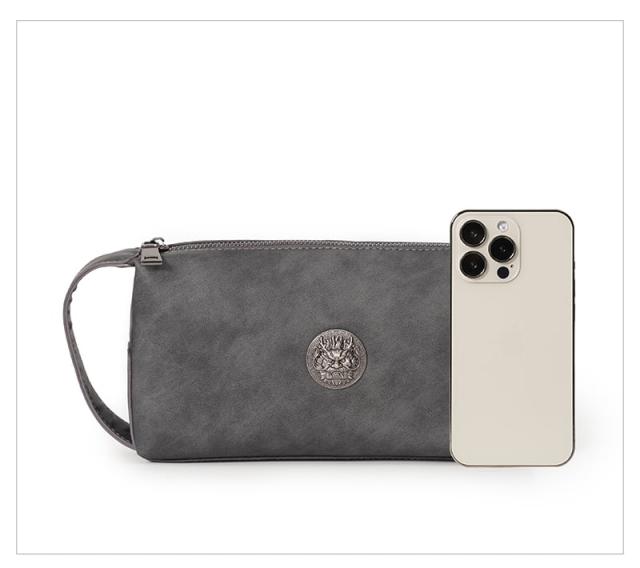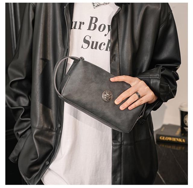 レザーの高級感はそのままに、お手入れや使い回ししやすい合皮素材を使ったクラッチバッグです。