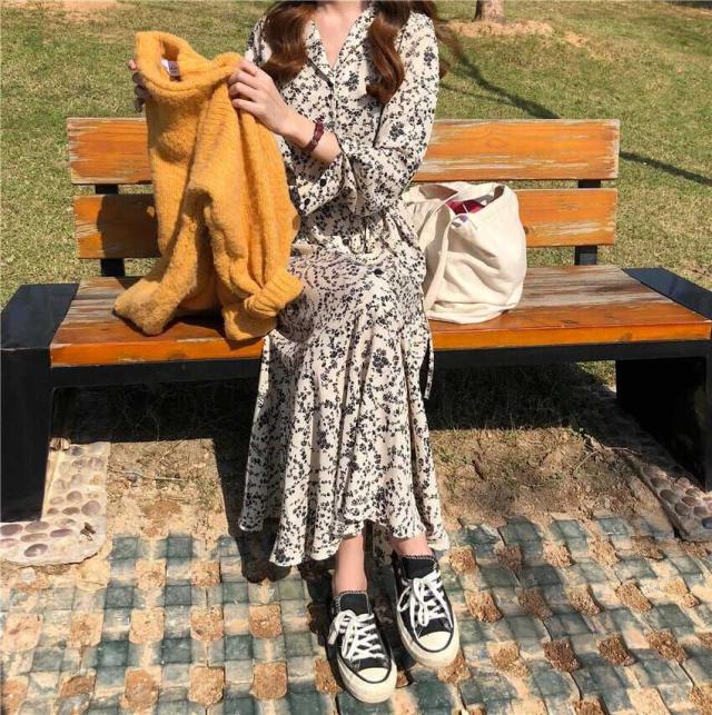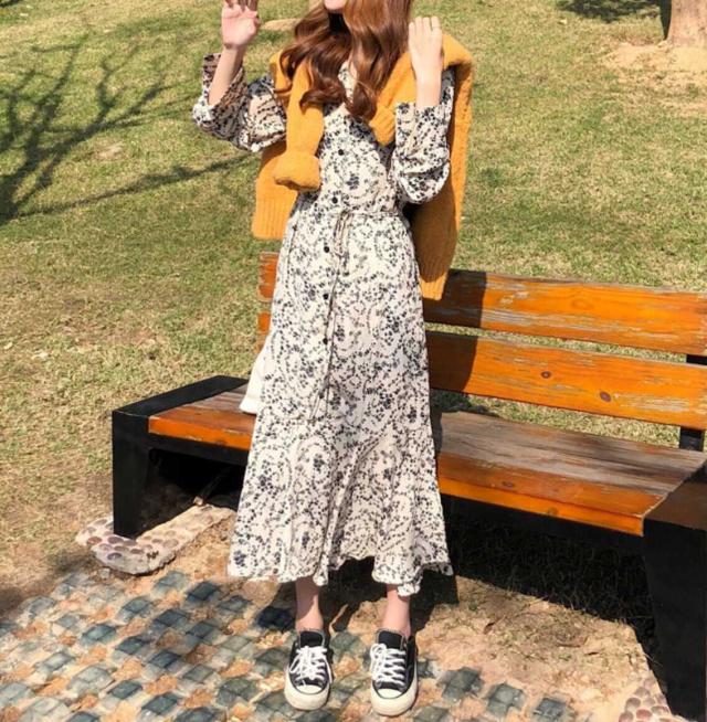 ワンピース 上着 人気 おすすめ おしゃれ お洒落 激安 安い 送料無料 プチプラ 長袖 ロング Vネック ふわふわ ふんわり オーバーサイズ Aライン 柄 フリル 花柄 プリント 可愛い かわいい