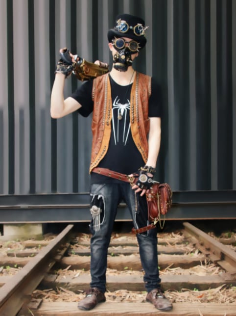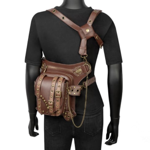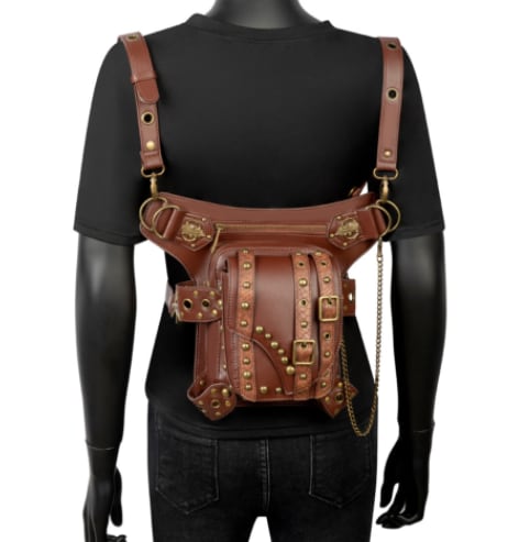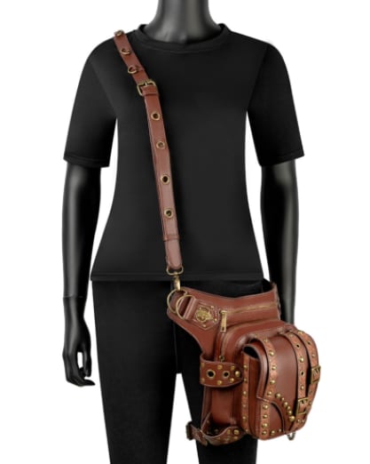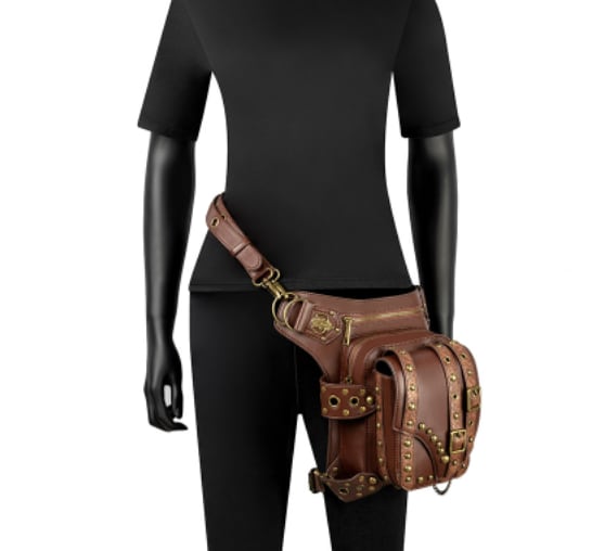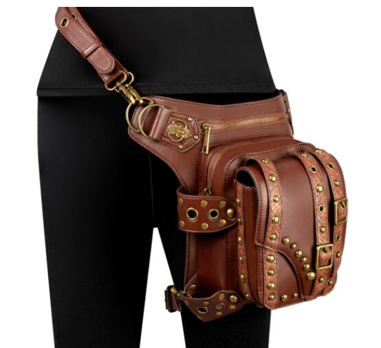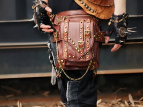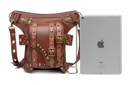 ごついpuレザーに複数のリベット鋲を打ち込んだおしゃれでワイルドなウエストバッグです。