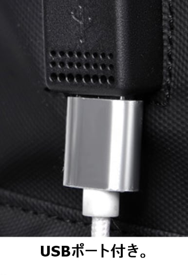 USBポートがついているのでモバイルバッテリーをつなぐことでスマートフォンを充電しながら使用できるバッグです。