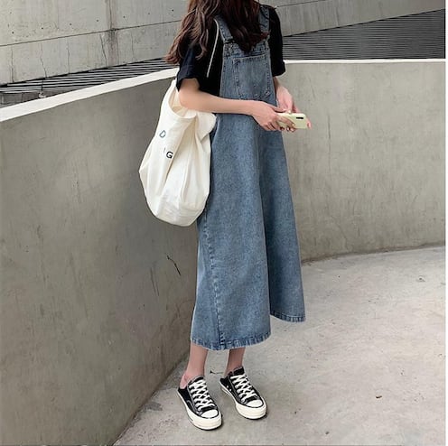 ワンピース 上着 人気 おすすめ おしゃれ お洒落 激安 安い 送料無料 プチプラ サロペット スクエアネック オーバーサイズ デニム コットン 綿 可愛い かわいい 韓国 シンプル カジュアル
