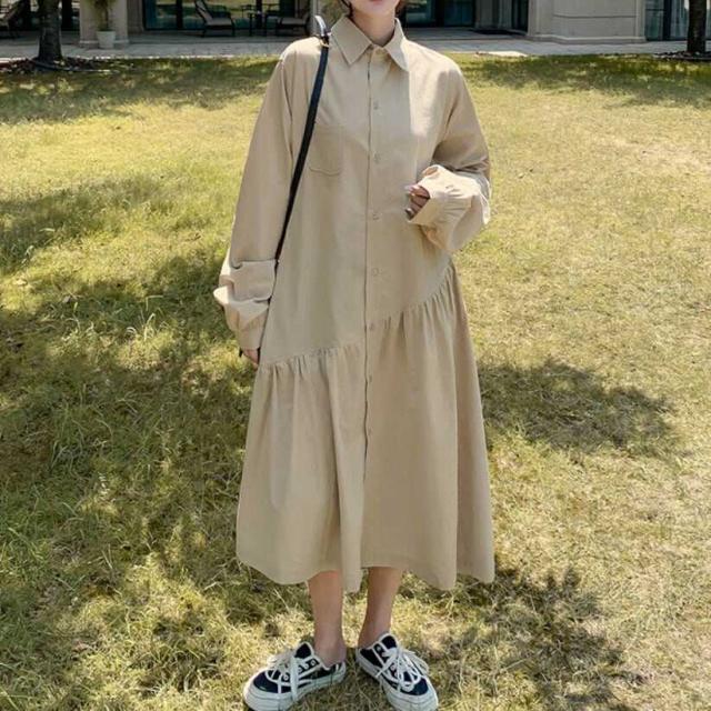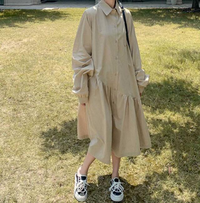 ワンピース 上着 人気 おすすめ おしゃれ お洒落 激安 安い 送料無料 プチプラ ブラウス シャツ 長袖 ロング ふんわり 無地 フリル コットン 綿 可愛い かわいい 韓国 シンプル カジュアル