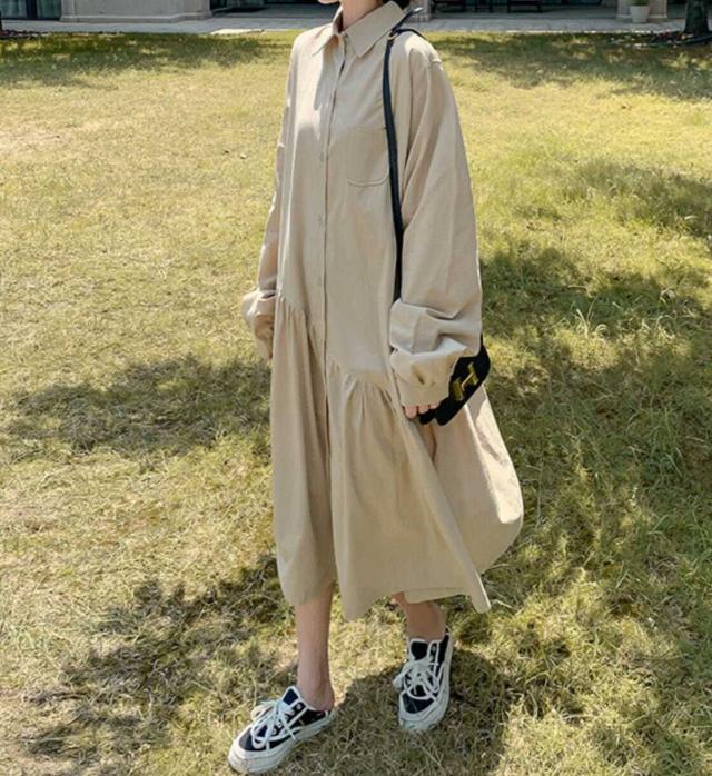 オーバーサイズなロングシャツワンピース。