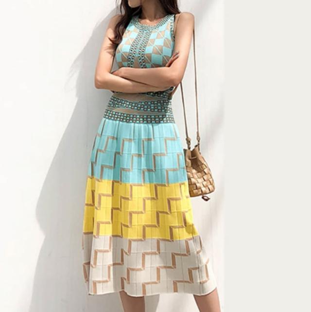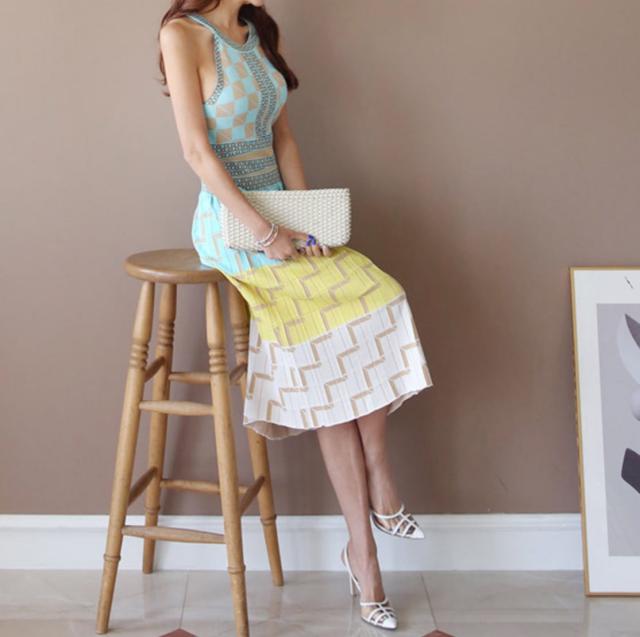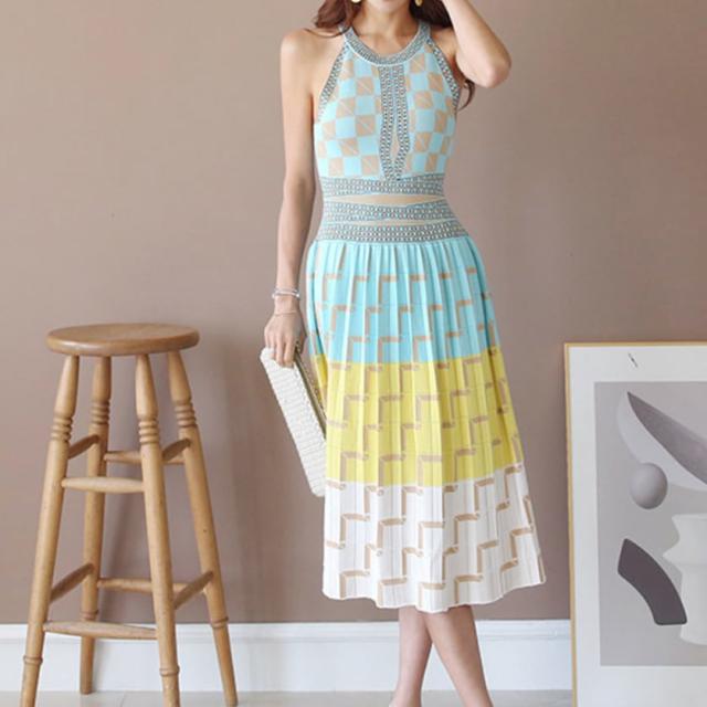 カラフルなホルターネックのサマードレス。