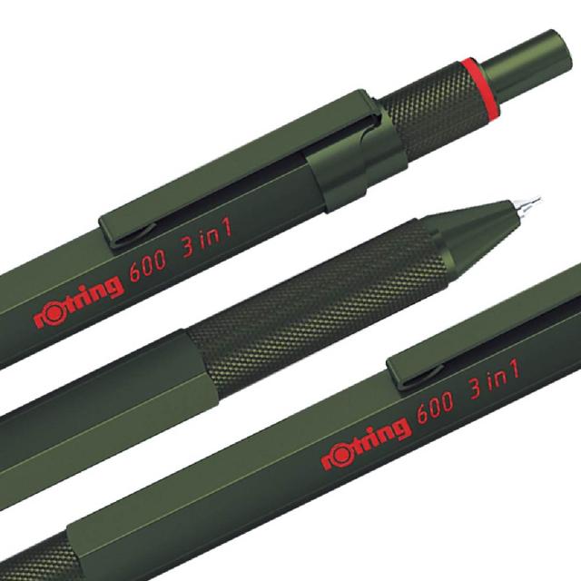 ロットリング 製図用シャープペン/ボールペン 600 3in1マルチペン(ボールペン黒・赤/メカニカルペンシル0.5)【アイアンブルー/カモフラージュグリーン/ブラック/シルバー/ホワイト】