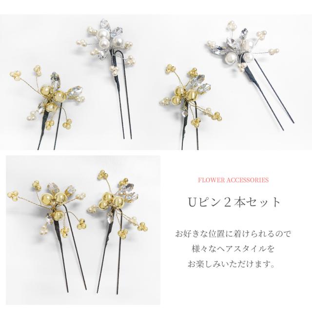 成人式 振袖 髪飾り 2点セット 振袖用 髪飾りセット パール ビジュー Uピン ヘアアクセサリー コサージュ 和装 アクセサリー 金 白 ゴールド 前撮り 七五三 753 浴衣 袴 入学式 卒業式 結婚式 ブライダル 披露宴 和風 洋風 Charmant シャルマン