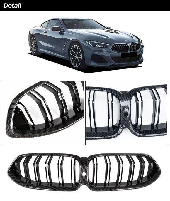 フロントグリルカバー BMW 8シリーズ G14/G15/G16 カメラ装備車対応 2018年11月〜 ブラックカーボン カーボンファイバー製 ダブルバー カメラホール付き AP-FG566