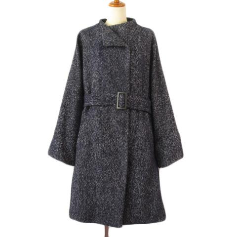 【中古】ノータデラマノシニストラ nota della mano sinistra コート ノーカラー ウール 紺 ネイビー レディース