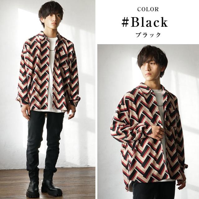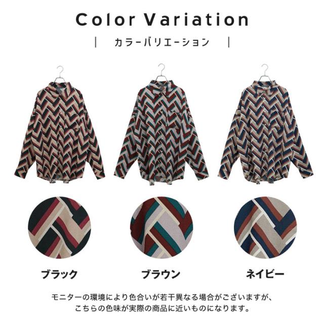 【幾何学柄総柄ビッグ長袖シャツ】