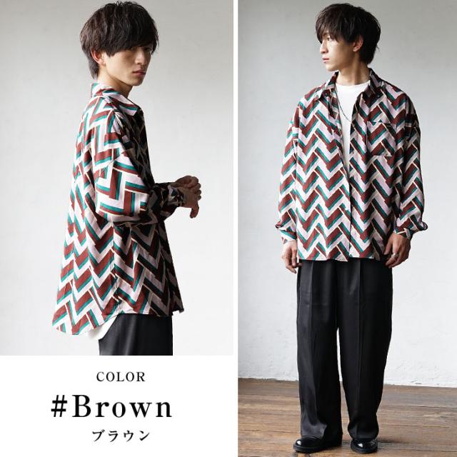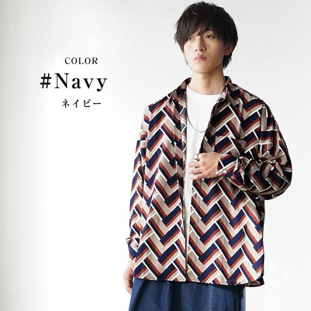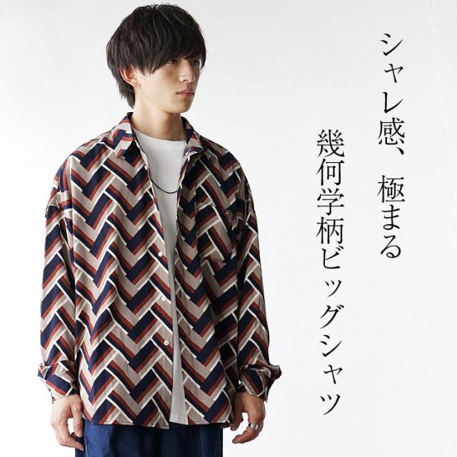 「シャレ感、極まる」幾何学柄総柄ビッグ長袖シャツ