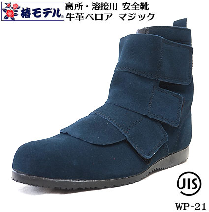 【椿モデル】 溶接用安全靴 JIS ベロア 革 マジック WP-21JIS T8101 安全靴ネイビー