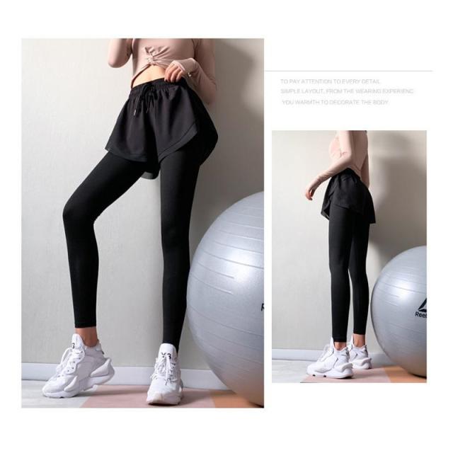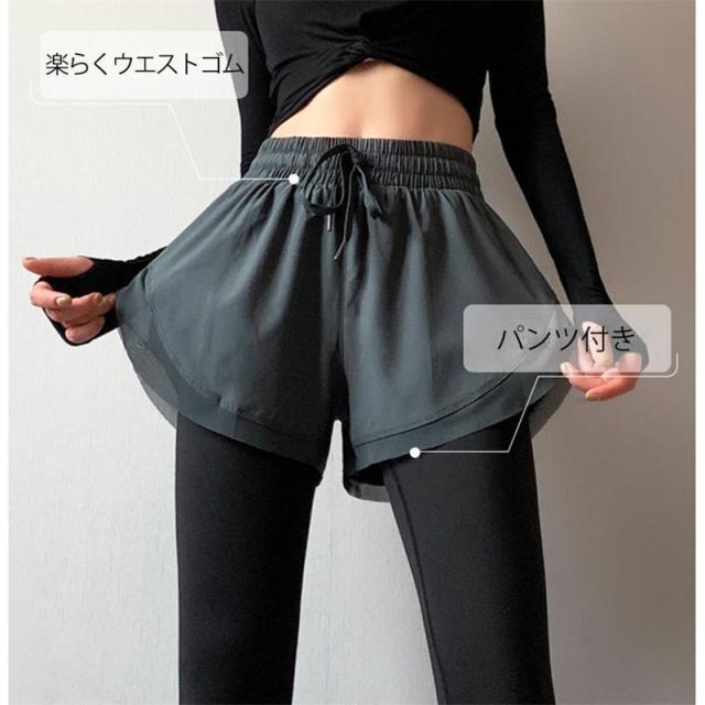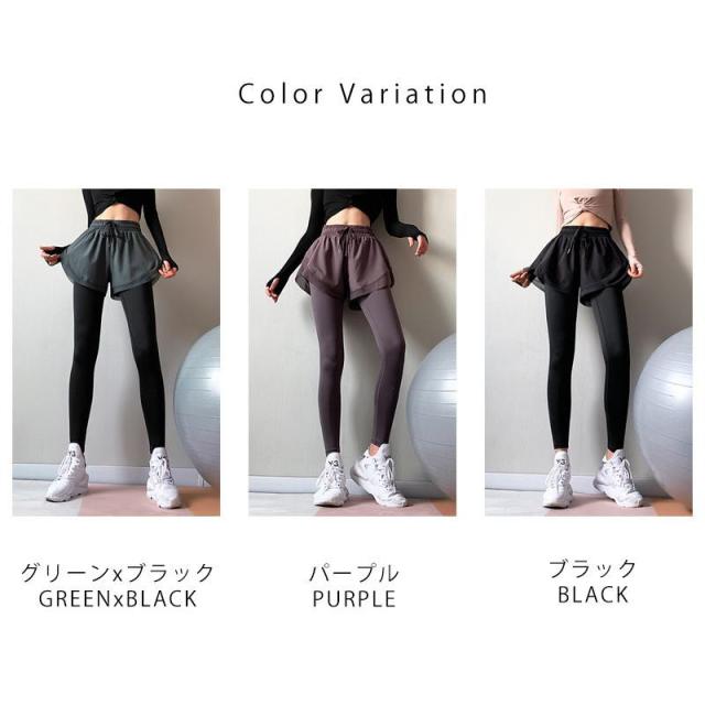 【新春セール】 ヨガパンツ レギンス ヨガレギンス レディース フェイクレイヤード ショートパンツ付き スポーツウエア トレーニングウェア ジョギ