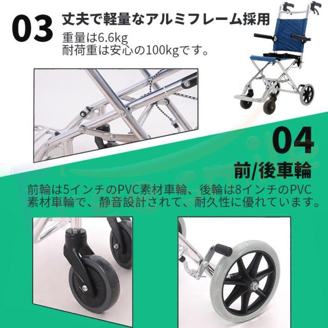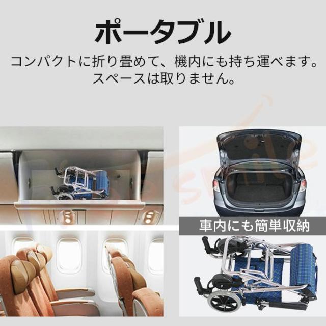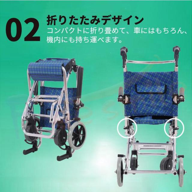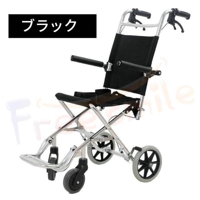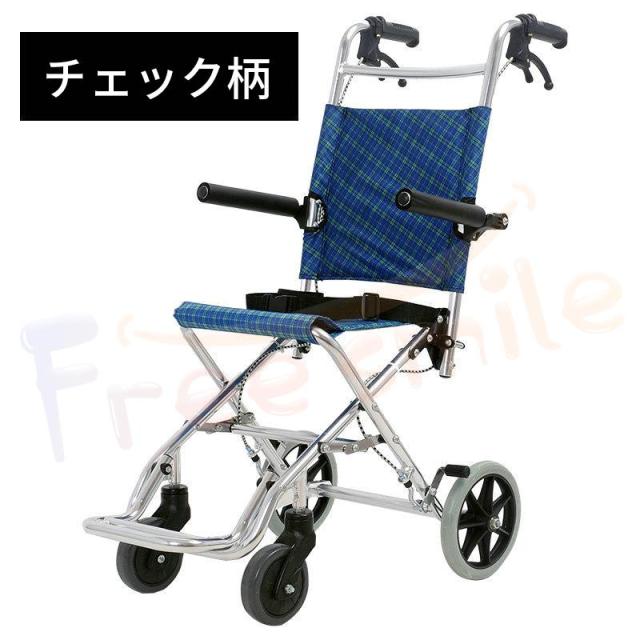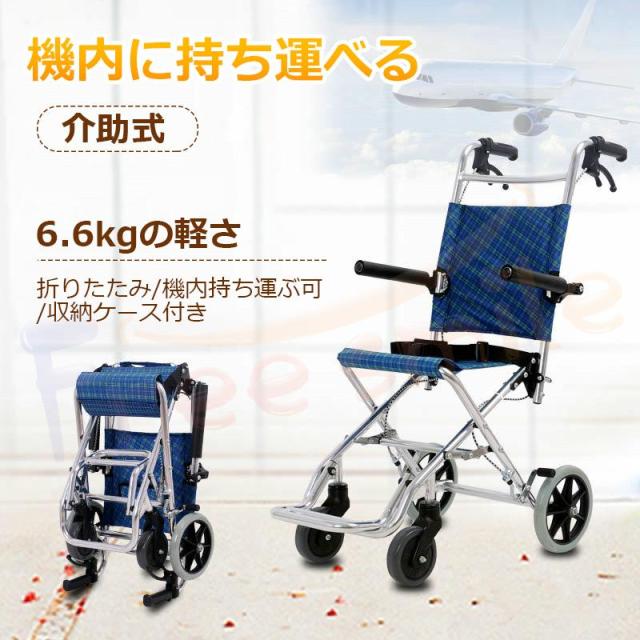 送料無料 車椅子 軽量 折りたたみ 簡易型 介助用 介護用 車いす ポータブル 旅行 機内へ持ち運び可 アルミ製 ブラック チェック
