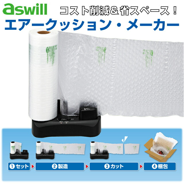 『代引不可』aswill エアークッションメーカー ブラック 50mフィルム付 ACM02 エアクッション フィルム 卓上 省スペース 梱包『送料無料(一部地域除く)』