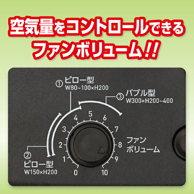 ファンボリュームを調整することで、複数のフィルムに対応した空気量を排出できます。