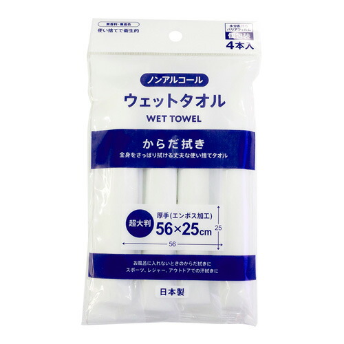 不動化学 超大判 ウェットタオル ノンアルコール 4本入り CN1698 タオル おしぼり 大きい 体ふき 体拭き 個包装 無香料