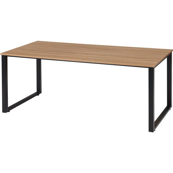 木目の天板とロの字型のスチール脚が特徴のシンプルなミーティングテーブルです。