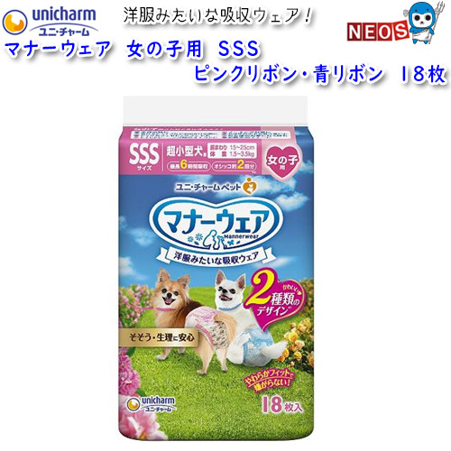 ユニ・チャーム マナーウェア 女の子用 SSS ピンクリボン・青リボン 18枚