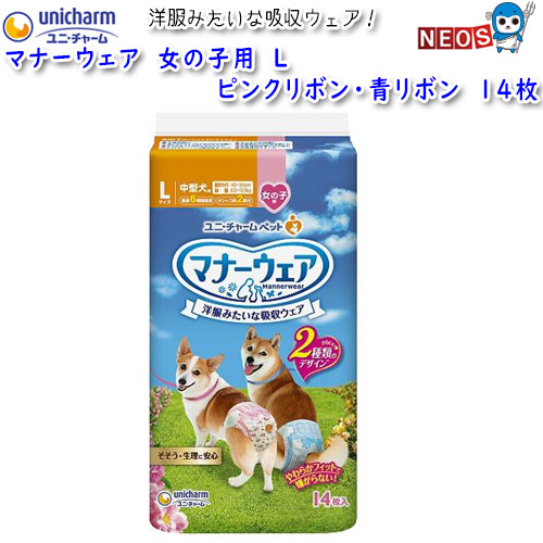 ユニ・チャーム マナーウェア 女の子用 L ピンクリボン・青リボン 14枚
