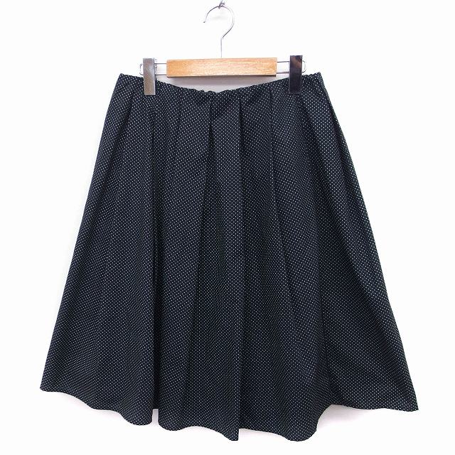 【中古】イノウェーブ innowave ドット柄 タック フレアスカート ひざ下丈 M ブラック 黒 /FT43 レディース