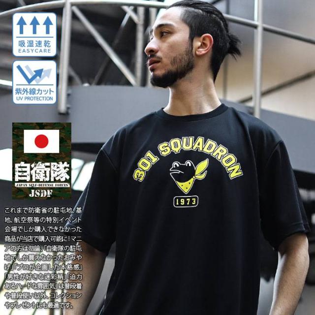 自衛隊 グッズ 第301飛行隊 マーク ケロヨン カエル F35 空自 メッシュTシャツ 半袖 吸水速乾 メッシュ UVカット メンズ 黒 大きいサイズ 三沢基地 航空自衛隊 かわいい ロゴマーク 快適 航空 服 PX品 JT-TS-TS-031