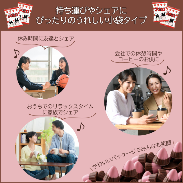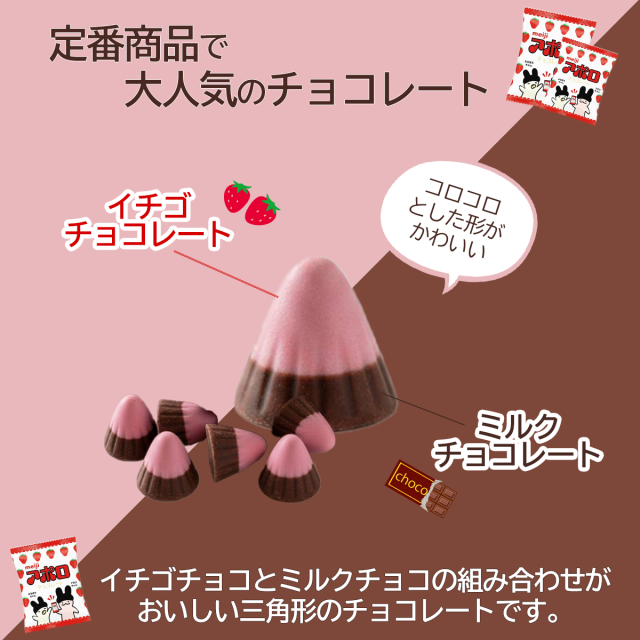 | 商品説明 | ・イチゴチョコとミルクチョコの組み合わせが可愛い三角形のチョコレート。 ・毎日のおやつにも、シェアにもピッタリ! |