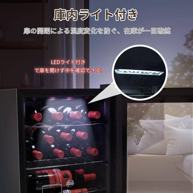 スイッチが扉の外側にあるから、扉を閉めたままボトルのラベルを確認できます。扉の開閉による温度変化を防ぎます。熱くなりにくいLEDライトで庫内をやさしく照らします。