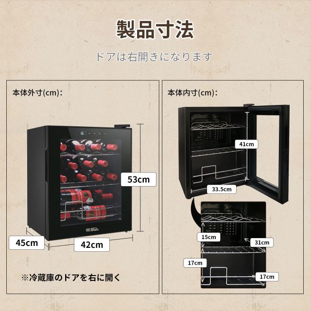 ワインセラー コンプレッサー式 15本収納 ECL 冷蔵庫 シャンパン ワインクーラー 5℃-18℃温度設定 日本酒 ワイン保存 静音 振動抑制 省エネ 三層ガラス LEDライト メモリ機能搭載 タッチパネル 家庭用 業務用 PSE認証済み