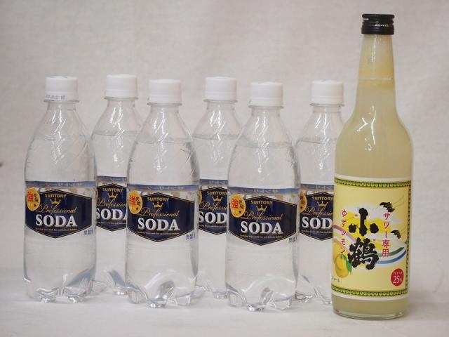 家のみ本格酎ハイ7本セット(サントリーソーダ 強炭酸水ペット 小鶴 サワー専用ゆずレモン 25度) 490ml×6本 600ml×1本