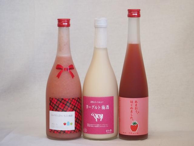 果物梅酒3本セット(あまおう梅酒 ミルクたっぷりいちごの梅酒 ヨーグルト梅酒(福岡)) 500ml×1本 720ml×2本