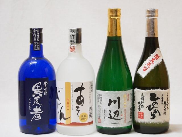 熊本県より米焼酎4本セット(あそびじん阿蘇美人 純米焼酎 純米焼酎 川辺 常圧蒸留 ひのひかり 純米焼酎 常圧蒸留氷点濾過 大麦焼酎 異風者) 720ml×4本