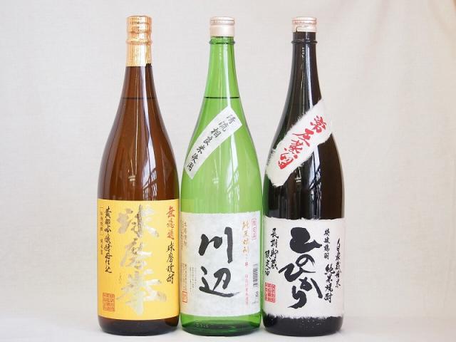 熊本県より米焼酎3本セット(純米焼酎 川辺 常圧蒸留 ひのひかり 純米焼酎 無濾過球磨焼酎 球磨拳) 1800ml×3本