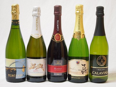 甘口スパークリング5本ワインセット(イタリア天使のアスティ スペインカラヴィニャモスカート スペインモンサラ・カヴァ・セミセック 嘉 -yoshi- オレンジマスカット イタリアカペッタロッソスプマウンテ赤ワイン)750ml×5本