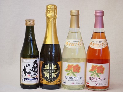 国産スパークリング4本セット(奥の松酒造 スパークリング日本酒 純米大吟醸(福島県)山元酒造 薩摩スパークリングゆずどん(鹿児島県) おたる微発泡ナイアガラ白ワイン(北海道) おたる微発泡キャンベルロゼワイン(北海道)) 290ml×1本 375ml×1本 500ml×2本