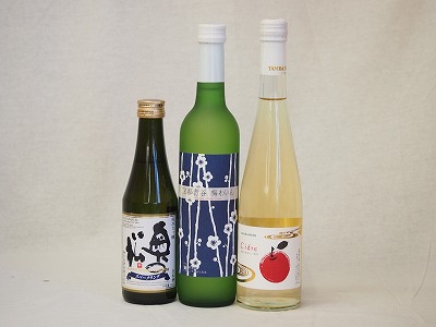 日本酒スパークリング飲み比べ3本セット(奥の松酒造 スパークリング日本酒 純米大吟醸(福島県) 京都山城青谷産城洲白梅わいん 青森弘前市産シードル) 290ml×1本 500ml×2本
