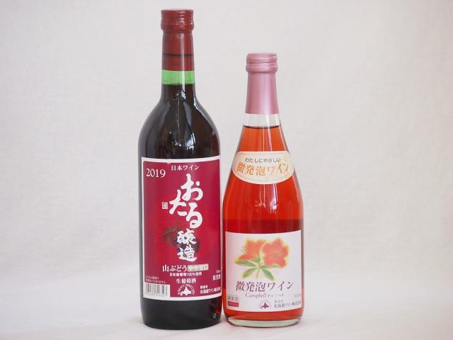 おたるワイン2本セット(キャンベル微発泡ロゼワインやや甘口 赤ワイン生葡萄酒 山ぶどうやや甘口) 500ml×1本 720ml×1本