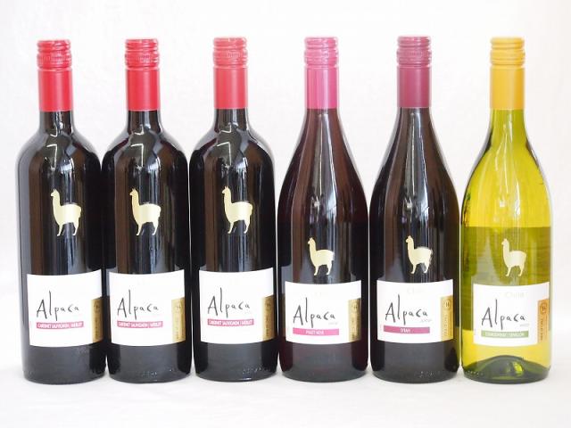 チリ産ワインアルパカ6本セット(赤ピノ・ノワール(ミディアムボディ) 赤シラー(フルボディ) 赤カベルネ・メルロー(ミディアムボディ) 白シャルドネ・セミヨン(辛口)) 750ml×6本