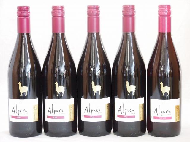 チリ産ワインアルパカ5本セット(赤ピノ・ノワール(ミディアムボディ) 赤シラー(フルボディ)) 750ml×5本