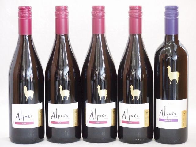 チリ産ワインアルパカ5本セット(赤シラー(フルボディ) 赤カルメネール(フルボディ)) 750ml×5本