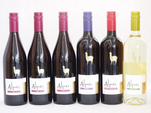 チリ産ワインアルパカ6本セット(赤シラー(フルボディ) 赤カルメネール(フルボディ) 赤カベルネ・メルロー(ミディアムボディ) 白ソーヴィニヨン・ブラン(辛口)) 750ml×6本