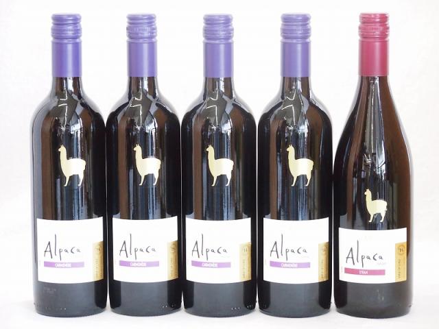チリ産ワインアルパカ5本セット(赤シラー(フルボディ) 赤カルメネール(フルボディ)) 750ml×5本