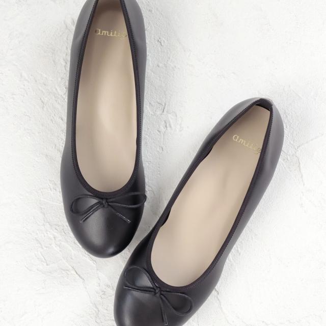 アミティエ(amitie)/【日本製・晴雨兼用】リボン付きラウンドトゥバレエパンプス