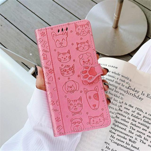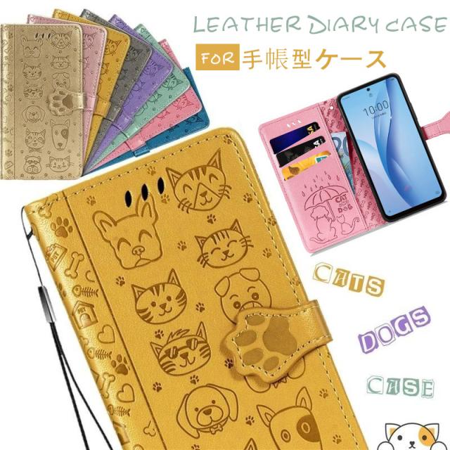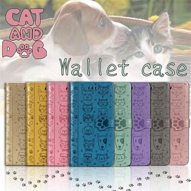 ○キュートなネコ&イヌ絵柄手帳型ケース全8色!。