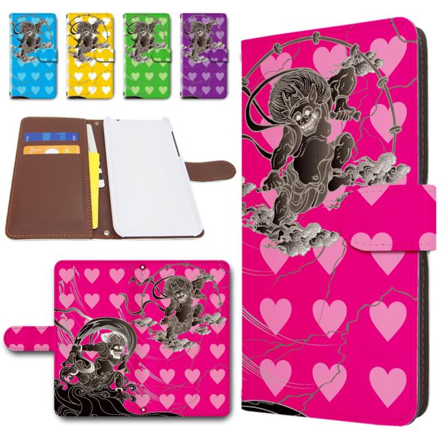 Xperia XZ1 SOV36 ケース 手帳型 カメラ穴搭載 ハート ラブリーな風神雷神 かわいい おしゃれ エクスペリア xz1ケース スマホケース auエクスペリアxz1sov36カバー 携帯ケース 手帳 カバー
