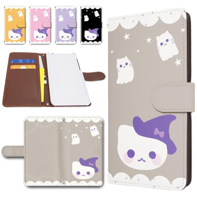 らくらくスマートフォン F-52B ケース 手帳型 カメラ穴あり くすみカラー かわいい ハロウィン ネコ お化け おしゃれ スマホケース らくらくスマートフォンケース f52b ケース 手帳ケース 手帳 カバー