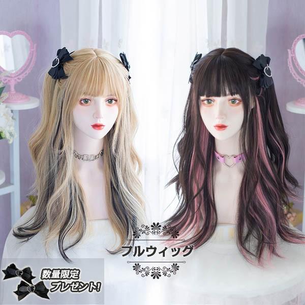 【レビュー投稿で+5%還元】ウィッグ レディース フルウィッグ ロング メッシュ インナーカラー 巻き髪 金髪 ブラック ピンク ぱっつん前髪 可愛い ハロウィン コスプレ 地雷系 ロリータ ゴスロリ コスチューム 原宿風 仮装 超自然 かつら 小顔 文化祭 イベント 学園祭