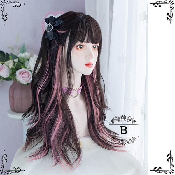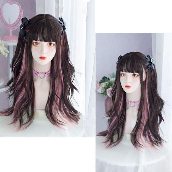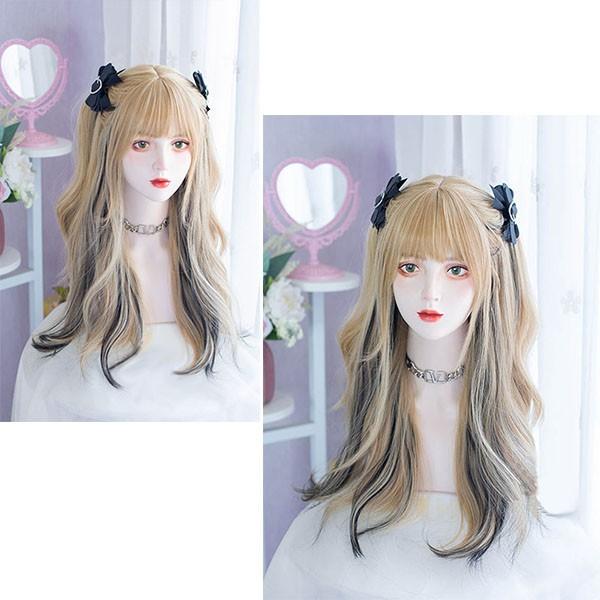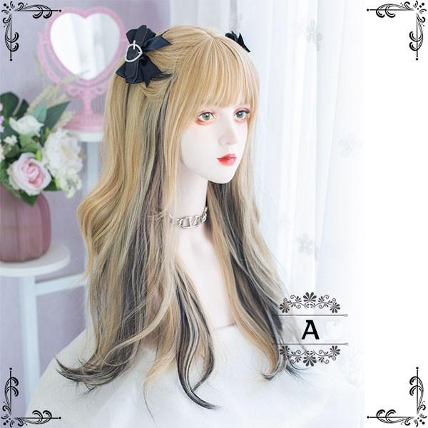 ウィッグ レディース フルウィッグ ロング メッシュ インナーカラー 巻き髪 金髪 ブラック ピンク ぱっつん前髪 可愛い かわいい ハロウィン コスプレ 地雷系 ロリータ ゴスロリ コスチューム 原宿風 仮装 超自然 かつら wig Lolita 小顔 文化祭 イベント 学園祭 dp021c9