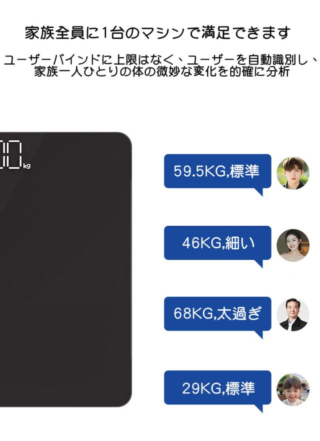 電子体重計 スマート健康体重計 スマホ連動 家庭全員体重計 最新モデル Bluetooth接続 測定専用体重計 高精度
